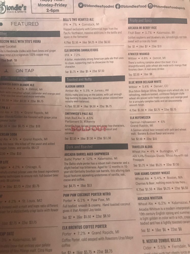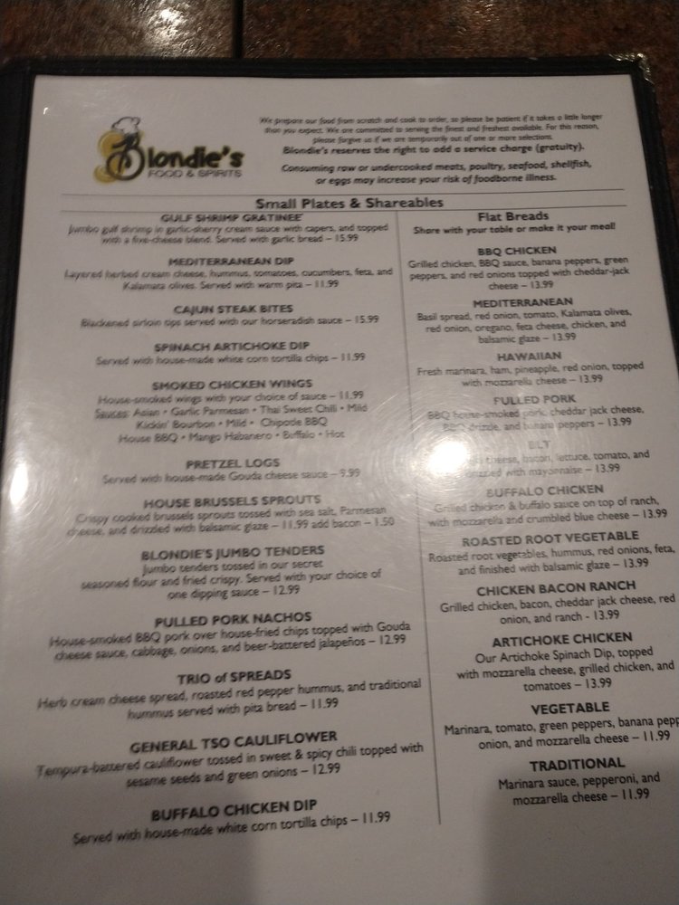 Blondie's Food and Spirits is a tapas/small plates restaurant in Flint, MI, known for its comfort food and vibrant bar atmosphere. It offers a variety of vegan and vegetarian options, along with amenities like outdoor seating, live music, and a full bar. Customers rave about the delicious food, with highlights including the BLT flatbread, quesadilla burger, and French onion soup. Despite a minor hiccup with a BLT pizza, overall experiences are positive, with guests praising the friendly staff and diverse menu offerings. The spacious and clean layout of the restaurant caters to both families and individuals looking for a fun night out. Whether you're in the mood for casual dining or a lively bar scene, Blondie's Food and Spirits promises a memorable experience.